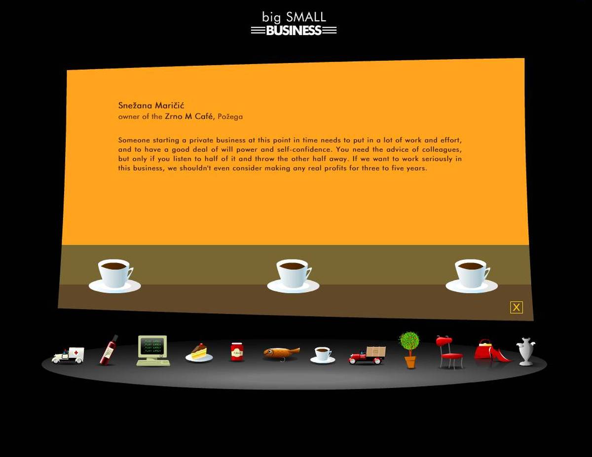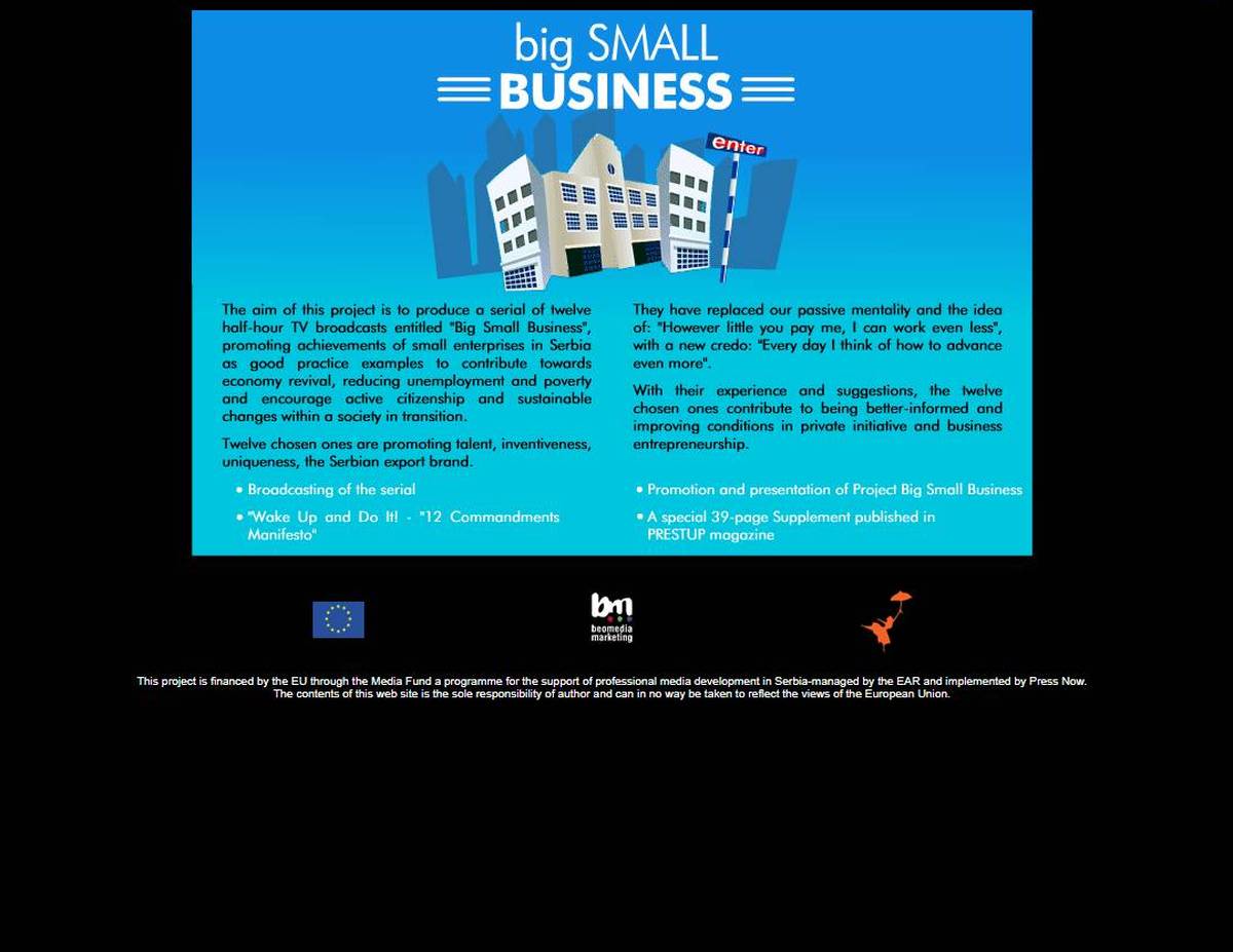 Serijal je fokusiran na promovisanje malog preduzetništva u Srbiji i želi da pokrene sve one koji bi da aktivno učestvuju u pozitivnim promenama. U dvanaest polusatnih TV emisija, dvanaest izabranih promovišu talenat, inventivnost, jedinstvenost i srpski izvozni brend. Oni su vlasnici privatnog biznisa koji svojim iskustvom i predlozima doprinose boljem informisanju i poboljšanju uslova u oblasti privatne inicijative i poslovnog preduzetništva.